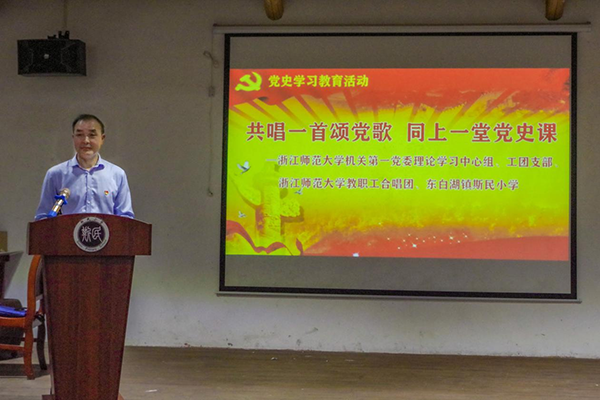 欲知大道,必先明其史。伴随着红色经典歌曲的旋律,机关第一党委书记、校工会主席蔡志良为参加活动的教师讲授《明理、增信、崇德、力行——庆祝中国共产党成立100周年》主题党课,党的百年奋斗历史仿佛一幅色彩鲜明的画卷在眼前徐徐展开。