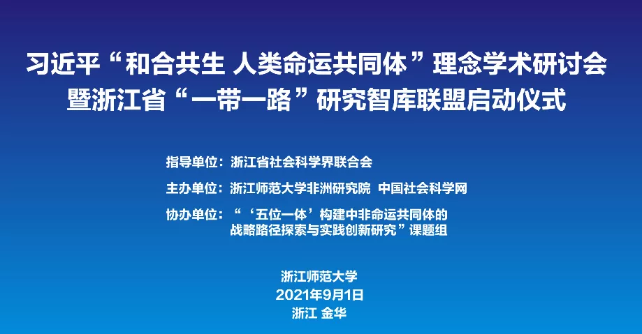 本次会议由浙江省社会科学界联合会指导,浙江师范大学非洲研究院、中国社会科学网联合主办,研究阐释十九届五中全会国家社科基金重大项目“‘ 五位一体’构建中非命运共同体的战略路径探索与实践创新研究”课题组协办。来自浙江省社会科学界联合会有关领导、浙江省“一带一路”研究智库联盟成员单位负责人以及中国人民大学、南京大学、复旦大学、同济大学、云南大学等智库学者代表、中国社会科学网、新华社浙江分社等媒体朋友80余人线上线下参加了启动仪式。