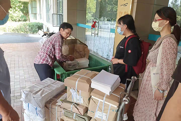 教育服务中心党支部紧紧围绕落实立德树人根本任务,弘扬优良作风,践行初心使命,连续多年坚持在开学季免费提供送教材服务,将一捆捆、一摞摞厚重的教材和本子送到学生方便分发的宿舍楼和教学楼。
