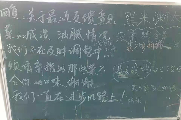 后勤保障部保障反馈渠道畅通,坚持以学生为中心,坚持问题导向,继续深入开展调查研究。利用学生事务大厅、微信公众号回音壁、食堂留言板等平台,畅通和规范群众诉求表达、利益协调、权益保障通道,进一步了解新时代师生对后勤工作的新需求,用心、用情、用力为广大师生群众办实事解难题。