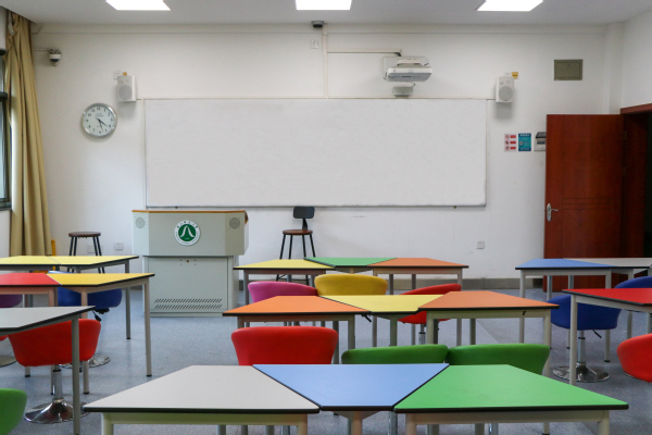 每间智慧教室都配有专用书写搪瓷白板或玻璃黑板,供老师学生推算演绎、交流探讨,并随时记录下迸发的灵感。教室已不仅仅是传统意义上用于教学的场所,还是供学生探究、创新的思想孵化地,教室将成为学生互动学习的主阵地。