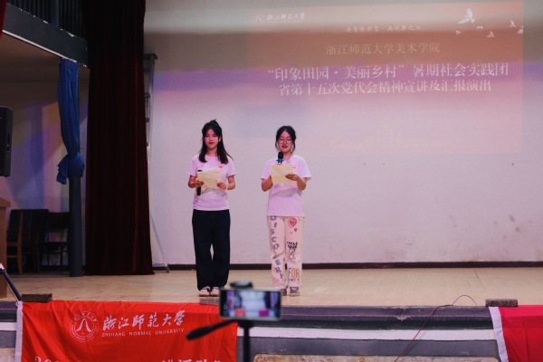 浙师大美术学院“印象田园·美丽乡村”暑期社会实践团在梓桐镇黄村村文化大礼堂成功举办红色宣讲&成果汇报演出。