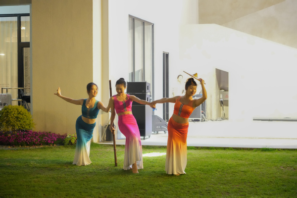 当晚,在东叶村原森圆曲音乐民宿大草坪上,浙师大z世代国际青年联欢晚会正式拉开序幕。现场的国际青年朋友们热情高歌,带来了彰显不同文化特色的节目。