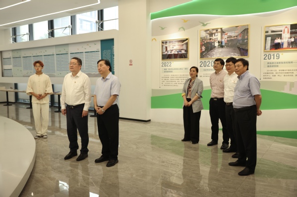 在湖州师范学院践行“两山”理念展示馆,湖州师范学院党委书记金佩华、校长许慧霞等班子成员热情接待了浙师大研学小组。大家在现场看视频、谈体会,重温了习近平总书记在浙江工作期间来湖州师范学院视察时的重要指示精神,围绕“沿着总书记足迹”“研习‘两山’理念”“助力共同富裕”三大板块,深入了解湖州师范学院坚持用“两山”理念全面指导学校教学、科研和社会服务等各项事业发展所取得的可喜成绩。