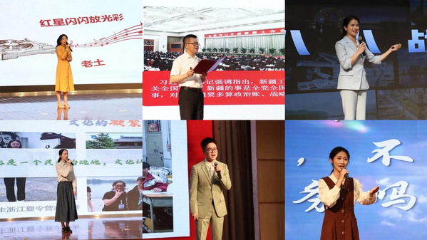 人文学院的杨蕾同学通过讲述党员父亲为民服务的故事,传承接力父辈党员初心,围绕“今、古、人、文”四个方面开展浙江文化研究,以当代情怀贯通古今,在“浙”里播种,做好朗读者、志愿者和传播者,在“进一步发挥浙江的人文优势”的实践中赓续红色血脉,让青春在创新创造中闪光!