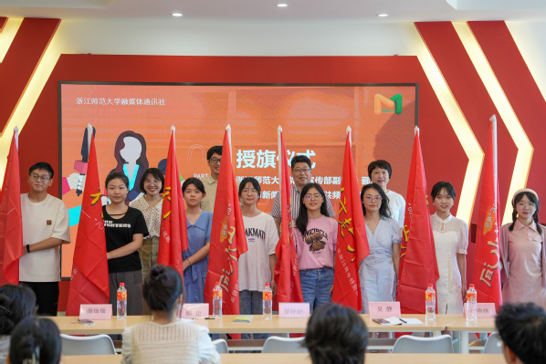 现场对10支蹲点采访小分队进行授旗。浙师大融媒体中心 刘乐美 摄