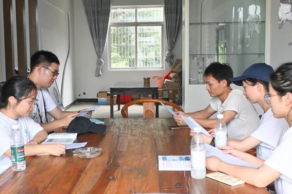 开化县作为衢州市唯一的革命老区,红色底蕴深厚。实践队员走访金星村红色纪念馆,与村书记徐雨录、副书记钱金雄等村两委干部座谈对话,深入了解红色旅游产业发展情况,交流红色文化资源的保护、传承和开发现状。实践队员整合当地特色红色资源,立足青少年党史教育,结合金星村“六堂”主题教育模式,为当地设计红培研学路线,以文旅融合突破产业瓶颈。