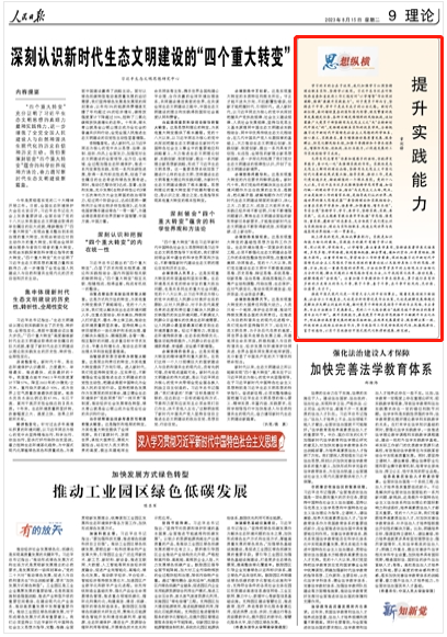 8月15日,《人民日报》理论版刊发浙江师范大学章剑锋教授文章《提升实践能力》。