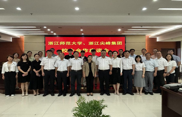 6月19日,浙师大党委副书记吕迎春带队赴浙江尖峰集团调研,就校企双方组织共建、资源共享、人才共育、发展共谋等对接交流。尖峰集团党委书记、董事长蒋晓萌,副总经理黄金龙、项崇平,首席科学家张强及集团相关部门领导、党支部书记等出席。