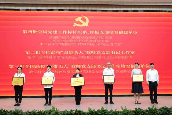 会议期间,与会党政班子成员为红色寻访暑期社会实践队授旗。全体党员集体重温了入党誓词。化学与材料科学学院、地理与环境科学学院、工学院党委负责人一起诵读了红色家书,带领全体党员追忆先辈革命壮举,感悟革命情操,体会信仰力量。