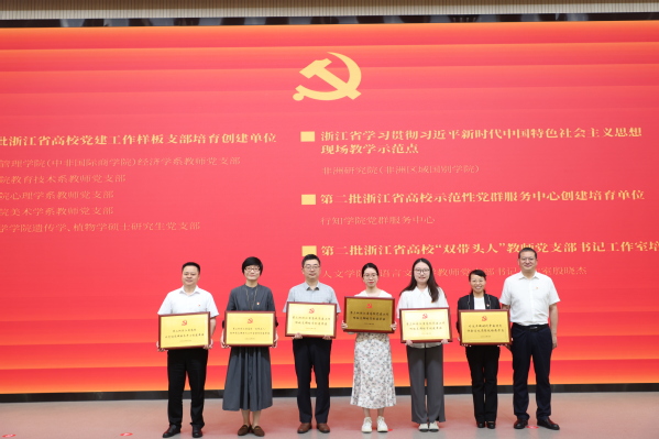 蒋云良为学校获批省级及以上党建“双创”项目的单位和个人授牌。浙师大融媒体中心 应琳歆 摄