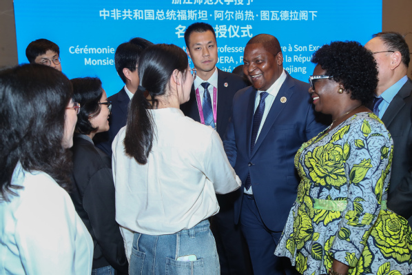 9月7日下午,浙江师范大学授予中非共和国总统福斯坦·阿尔尚热·图瓦德拉阁下名誉教授仪式在北京举行。