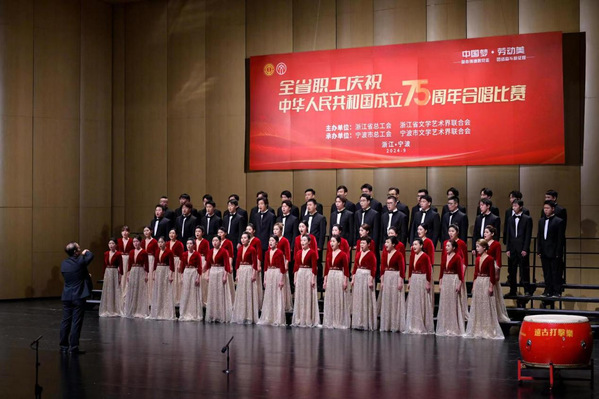 在中华人民共和国成立75周年之际,由浙江省总工会和浙江省文学艺术界联合会主办、宁波市总工会和宁波市文学艺术界联合会承办的“中国梦·劳动美”全省职工合唱比赛于9月24日在宁波市文化广场大剧院举行。省人大常委会副主任、省总工会主席刘忻出席开幕式并观看比赛。