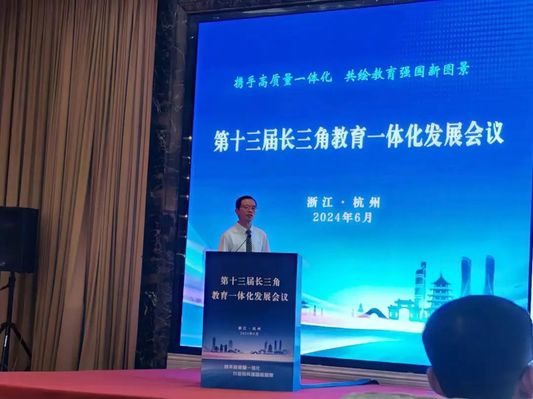日前,“第十三届长三角教育一体化发展会议”在浙江省杭州市召开。浙江省人民政府副秘书长任贤锋代表副省长卢山到会致辞,教育部发展规划司副司长纪智出席会议并讲话。上海市教委主任周亚明、江苏省教育厅厅长江涌、安徽省教育厅厅长钱桂仑、浙江省教育厅厅长陈春雷分别作大会主旨演讲,汇报总结各自省市参与长三角教育一体化发展的进展情况。会议由浙江省教育厅副厅长白红霞主持。