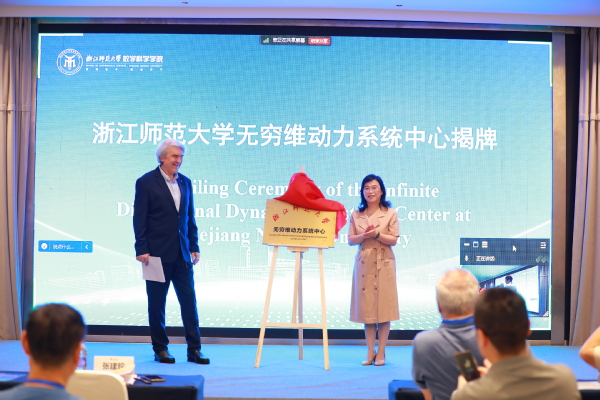成立仪式上,张建珍与谢尔盖·泽里克共同为无穷维动力系统中心揭牌,标志着浙江师范大学无穷维动力系统中心正式成立,中心接下来将正常运行并开展系列学术活动。