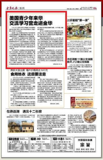 据了解,本次交流营是去年11月习近平总书记访美期间发出“为扩大中美两国人民特别是青少年一代交流,中方未来5年愿邀请5万名美国青少年来华交流学习”倡议之后,应邀来金交流学习的美国青少年。此前,金华已接待来自美国印第安纳州和佛罗里达州多所学校的中学生和美国伯米吉州立大学学生,共计80余名美国青少年来金交流学习。