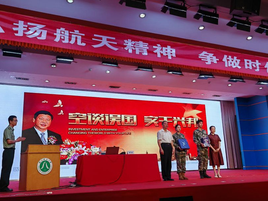 申行运大校曾全程负责中国首批航天员的选拔以及航天员大队的筹备组建,带领杨利伟、翟志刚等中国首批航天员勤奋工作,锐意进取,圆满完成神舟五号、神舟六号、神舟七号飞行任务。他从航天员的选拔与训练、中国航天的成功以及载人航天精神等方面分享了中国载人航天事业发展走过的不凡历程。申行运大校表示,“中国航天从最开始的一穷二白,到如今,嫦娥奔月,北斗指路,天宫遨游,祝融探火,由航天大国到航天强国的蜕变离不开党和国家的英明决策,离不开全国人民的鼎力支持,离不开科技人才队伍的培养和载人航天精神的传承。”