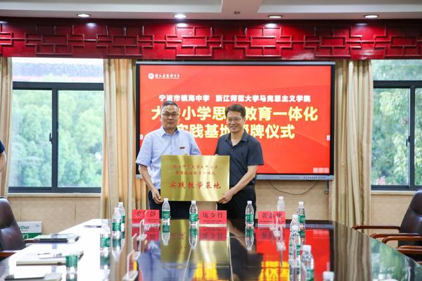 近日,浙江师范大学大中小学思想政治教育一体化实践教学基地在宁波市镇海中学和宁波市北仑区柴桥中学揭牌。