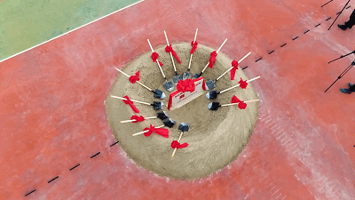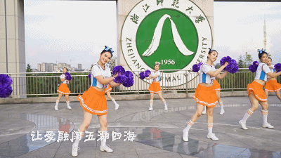 浙师啦啦操队员们手举紫色花球