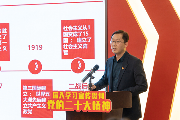 马克思主义学院思政课教师郑海祥宣讲党的二十大精神。 浙师大融媒体中心 李丰成 摄