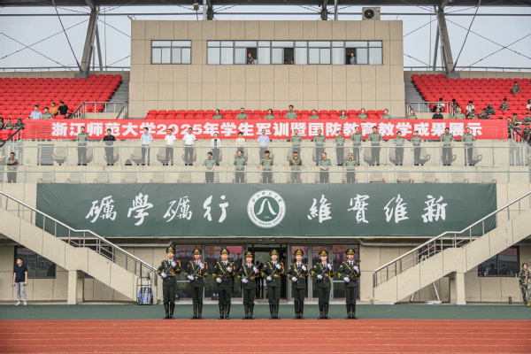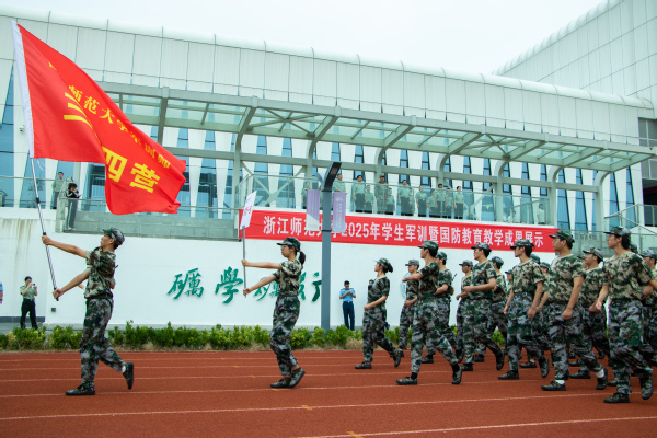 浙师大2025级新生军训暨国防教育教学成果展示金华校区现场。浙师大融媒体中心 李俊驰 摄