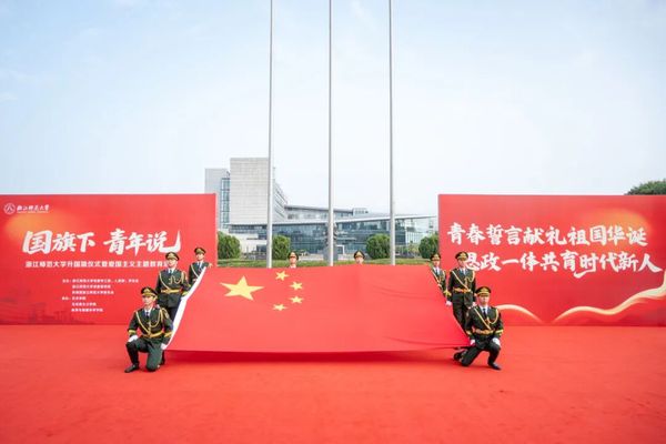 早晨七时许,300余人共聚崇师广场,听嘹亮歌声久久回荡,看鲜艳红旗冉冉升起。浙江师范大学“国旗下 青年说”升国旗仪式暨爱国主义主题教育活动正式开始。