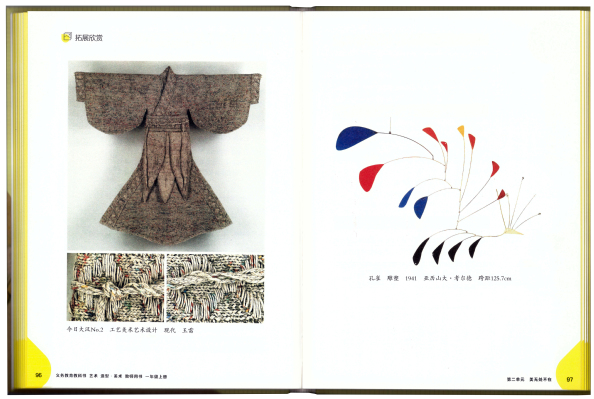 浙美版教材是我国基础美术教育领域的重要教材,尤其作为一年级上册的教科书,是启蒙孩子们人生“美育”的第一步。《艺术 造型·美术教师用书》是浙美版美术教材的重要组成部分,该用书为教育工作者提供了翔实的教学资源和教案设计,以便在教学过程中更有效地指导学生掌握美术知识。入编本书的美术作品经过严格筛选,多为古今中外美术史上的经典之作。教材第96页整版介绍了王雷教授的作品《今日大汉no.2》,本作品以报纸结合生活实用性技术“编织”的手段,借用中华民族代表性文化符号——汉服。作品化腐朽为神奇的表达,折射出时间维度上的“古今对话”,呈现了古今一体的“天下奇观”。这种创新不仅丰富了美术教育的内涵,也为小学生提供了多元化的视觉体验。