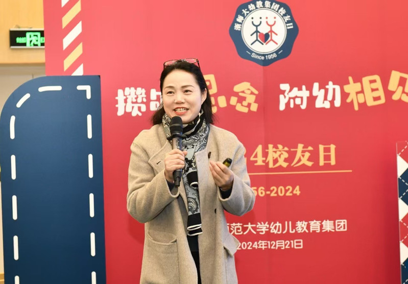 浙师大幼教集团总园长胡瑛在活动现场致辞。受访者供图