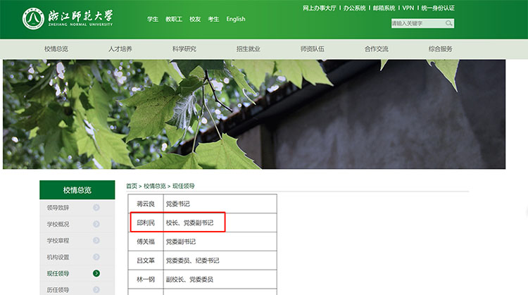 日前,浙江师范大学凯发网址官网“现任领导”栏目更新显示,邱利民已任浙江师范大学校长、党委副书记。