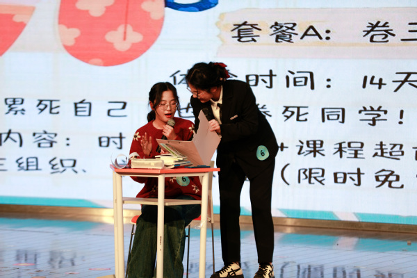 在“共赴锦城”环节,同学们倾情演绎、各显神通。“汪汪队”开题新颖,以争取奖学金失败而陷入时间循环为线索,告诫同学们,不要过分在意外在评价,学会自我认同。“武房四宝队”用独特的视角演绎“脆皮大学生”——“‘脆’而不摧”才是大学生应有的底色。“睡觉少女特工队”在《幸福宝典》的指引下学会了换位思考、将心比心,在寝室成员不同的生活习惯和作息中找到平衡,寝室生活迈向和谐。“消烦大队”以“很高兴再见你,我的朋友”为主旨,告诉我们当寝室关系陷入冷淡期时,真诚的沟通才是感情升温的关键。